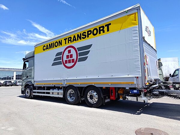 LKW: MOBAS-Ladebrücke CODE XL mit Schiebeverdeck, Hubdach und Hebebühne