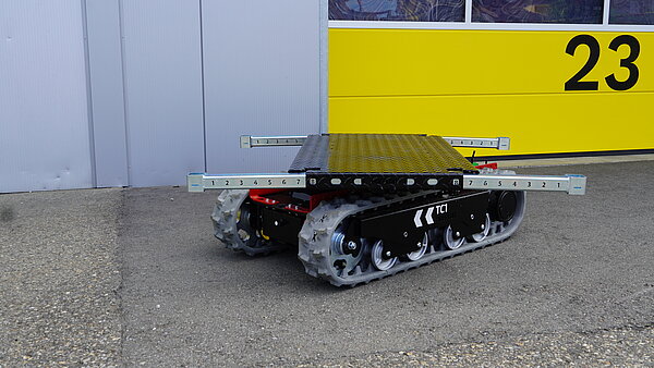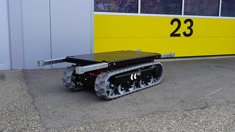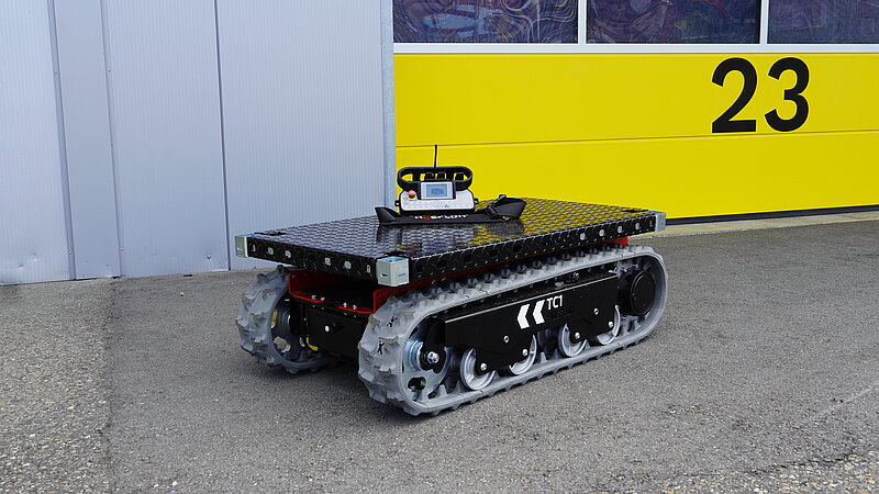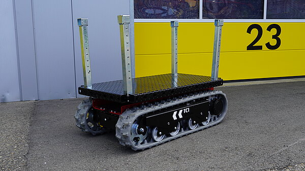 Der kompakte und leistungsstarke Raupen-Transportwagen überzeugt durch seine drehbare Plattform, den niedrigen Schwerpunkt sowie seine präzise Manövrierfähigkeit. Selbst unter Last meistert der TC1e mühelos Kurvenfahrten und bewältigt auch stark geneigte Hänge problemlos.
