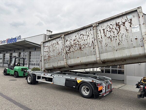 Der neue Müller-Mitteltal Zweiachs-Anhänger für Rollbehälter RA -T 18.0 ist da – Stark, vielseitig und bereit für jede Herausforderung! Ausgestattet mit Aussenrollbahn, Verriegelung und Feuerverzinktem Fahrgestell ein echtes Multitalent für den Transport von Abrollmulden.